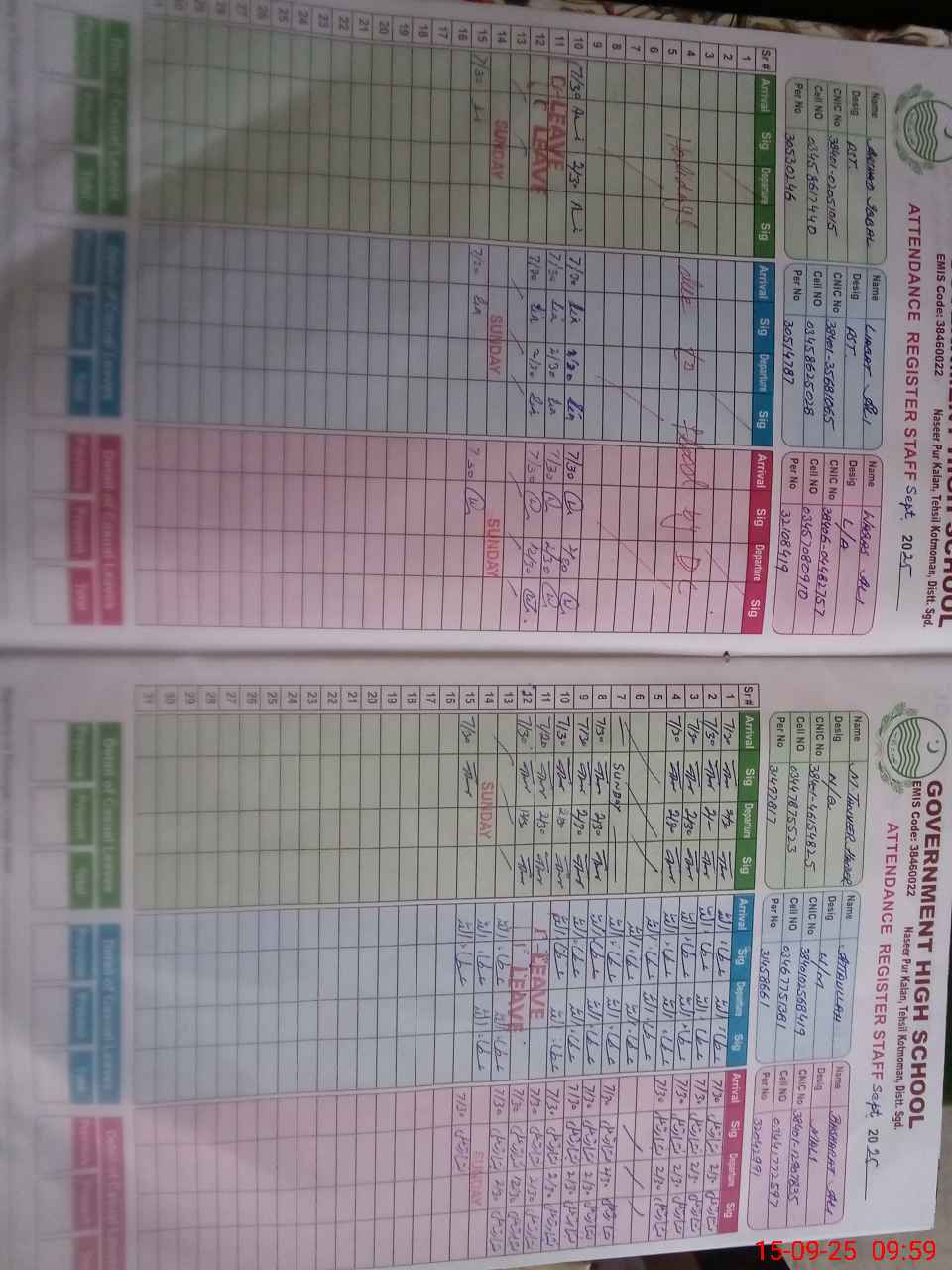 | CNIC | Full Name | Designation | R/C | Absence During Last Calender Month |