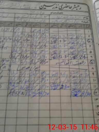 | CNIC | Full Name | Designation | R/C | Absence During Last Calender Month |