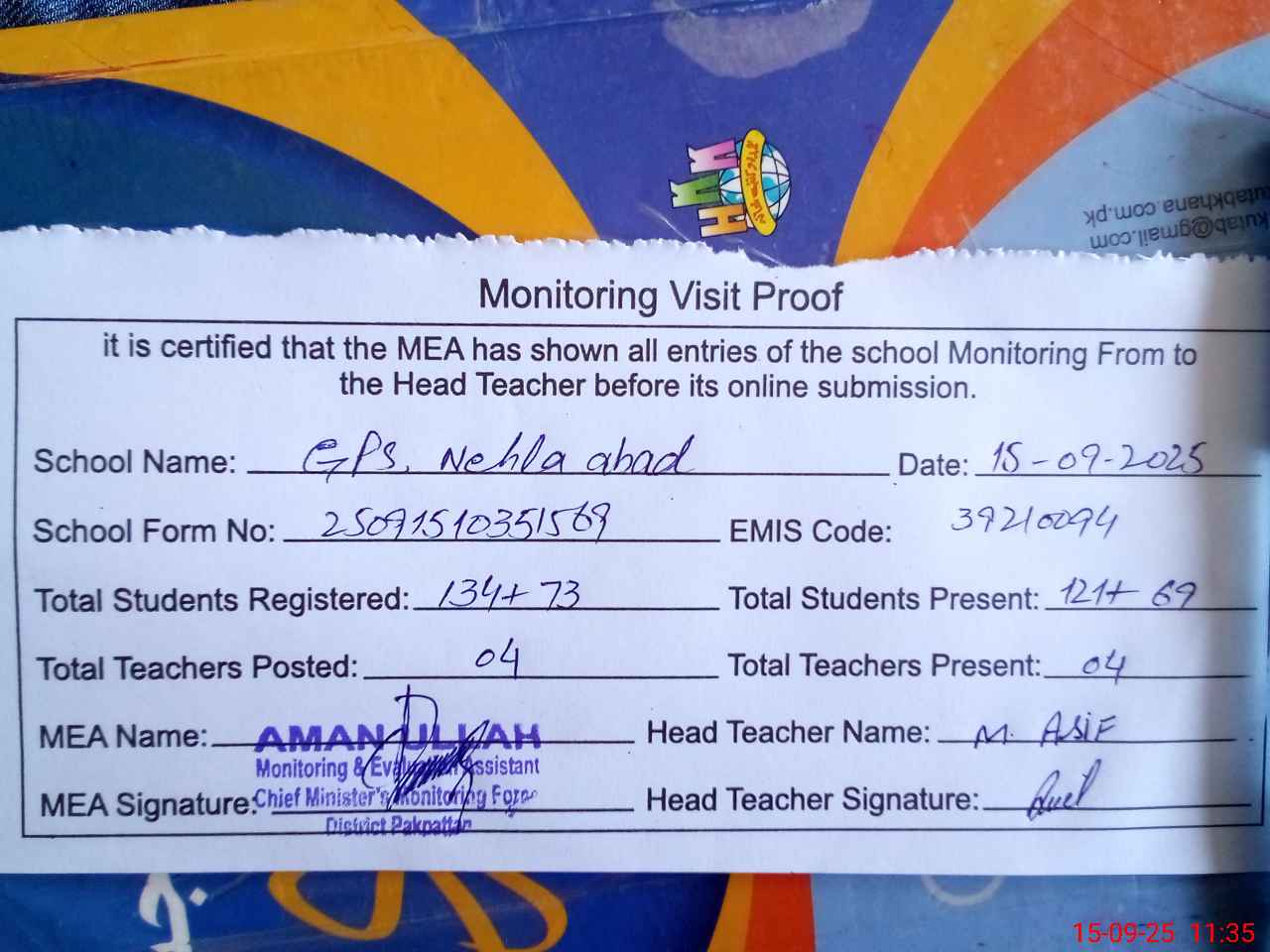 | EMIS Code: 39210094 | Name of School: GPS NEHLA ABAD P/O DHUPAI | |||
