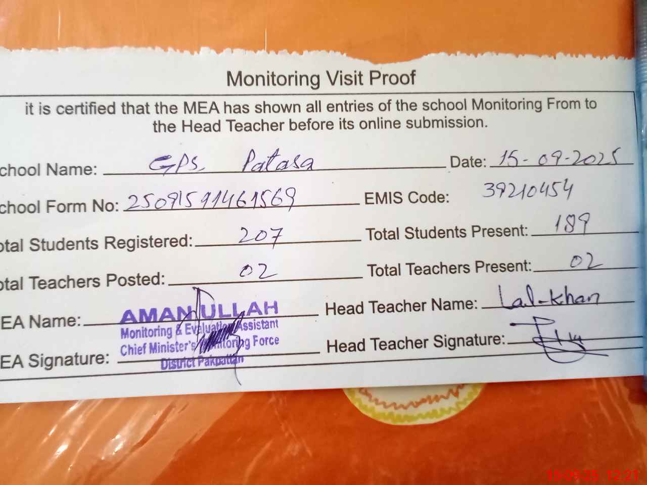 | EMIS Code: 39210454 | Name of School: GPS PATASA P/O DHUPAI | |||