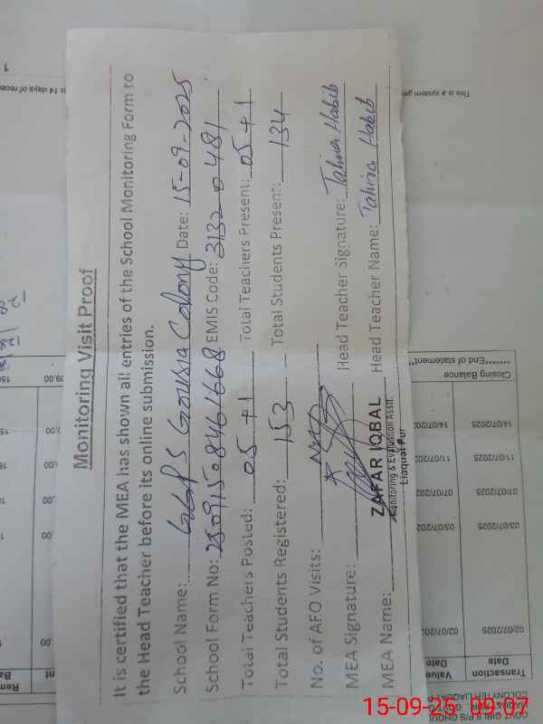 | EMIS Code: 31320481 | Name of School: GGPS GOUSIA COLONY | |||