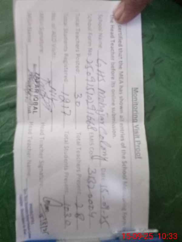 | EMIS Code: 31320004 | Name of School: GHS MOHAJAR COLONY | |||