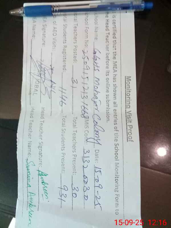 | EMIS Code: 31320030 | Name of School: GGHS MOHAJAR COLONY LQP | |||