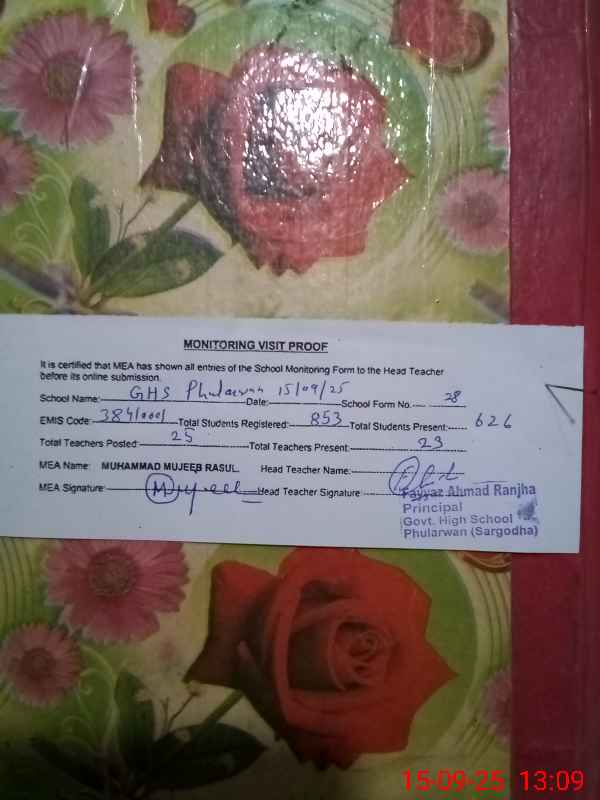 | EMIS Code: 38410001 | Name of School: GHS PHULARWAN | |||