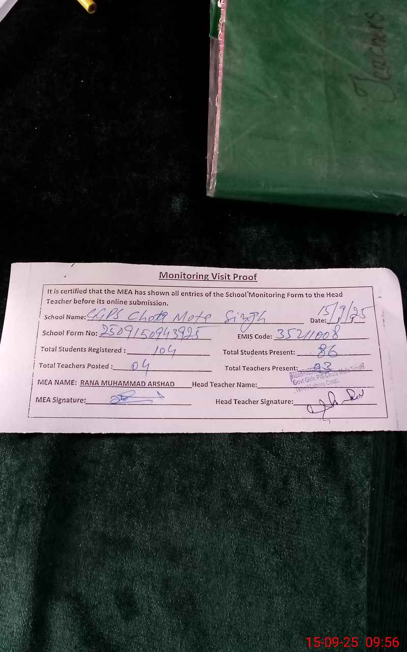 | EMIS Code: 35211008 | Name of School: GGPS CHOTA MOTA SINGH | |||