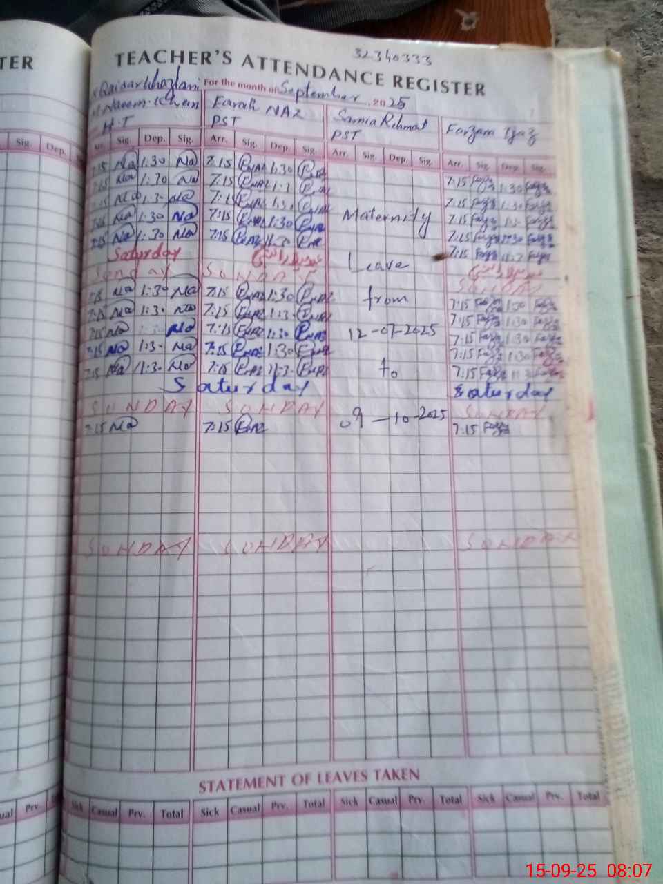 | 32**** | Sa**** Re**** | PST | Regular | 0 | 0 | 0 | 0 | 0 | 0 | 0 | 0 | 0 | Maternity |