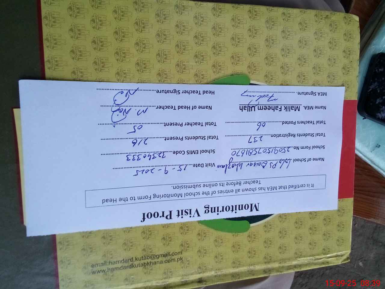| Certified that this School was Inspected by the Undersigned MEA/DMO Today and the Information Stated Above is as Per Record. | |||||
