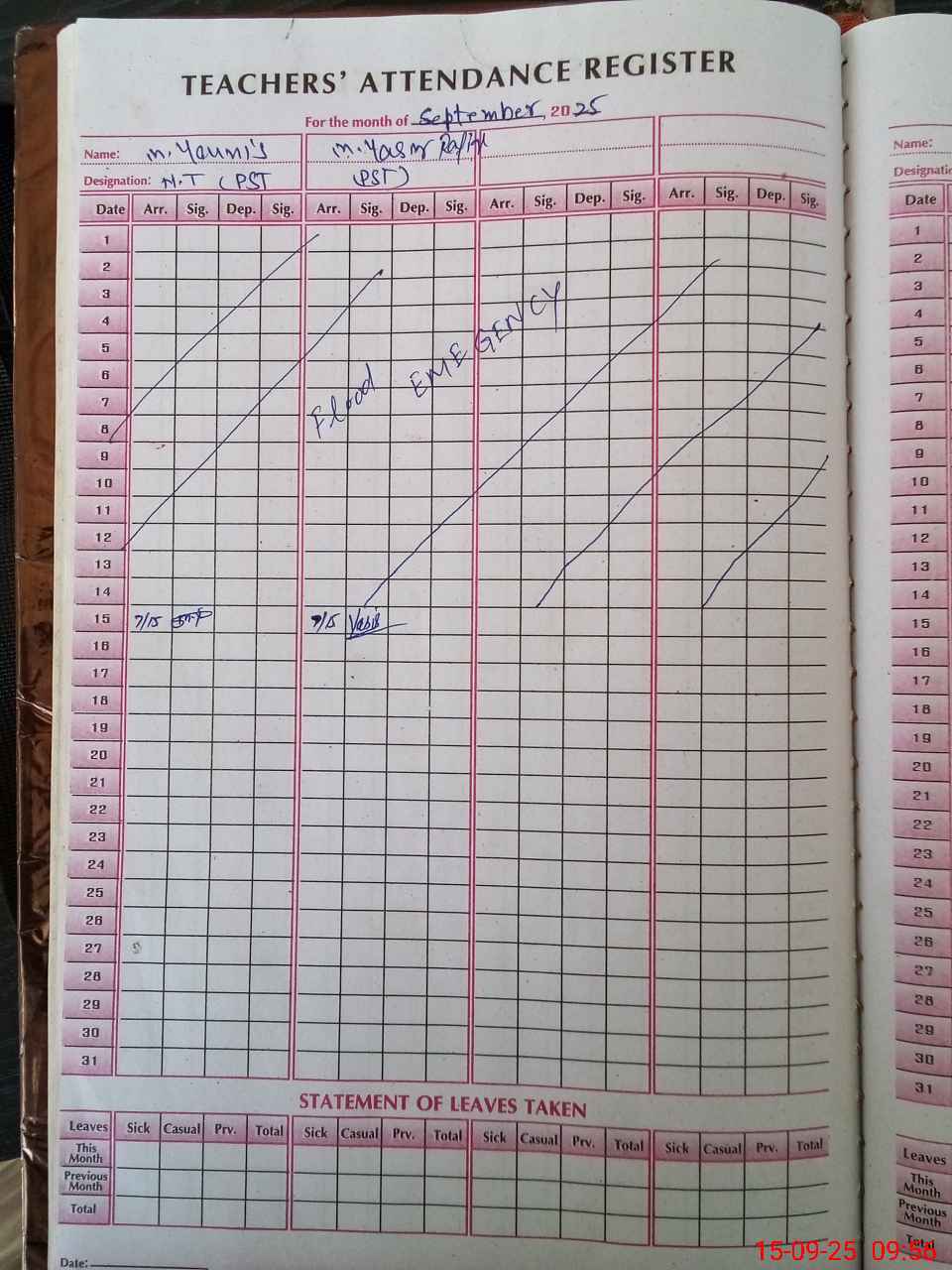 | Monitoring Date: 15-09-2025 | Start Time: 15-09-2025 09:52 AM | End Time: 15-09-2025 10:18 AM | Name of MEA: MU**** FA**** UL**** | |