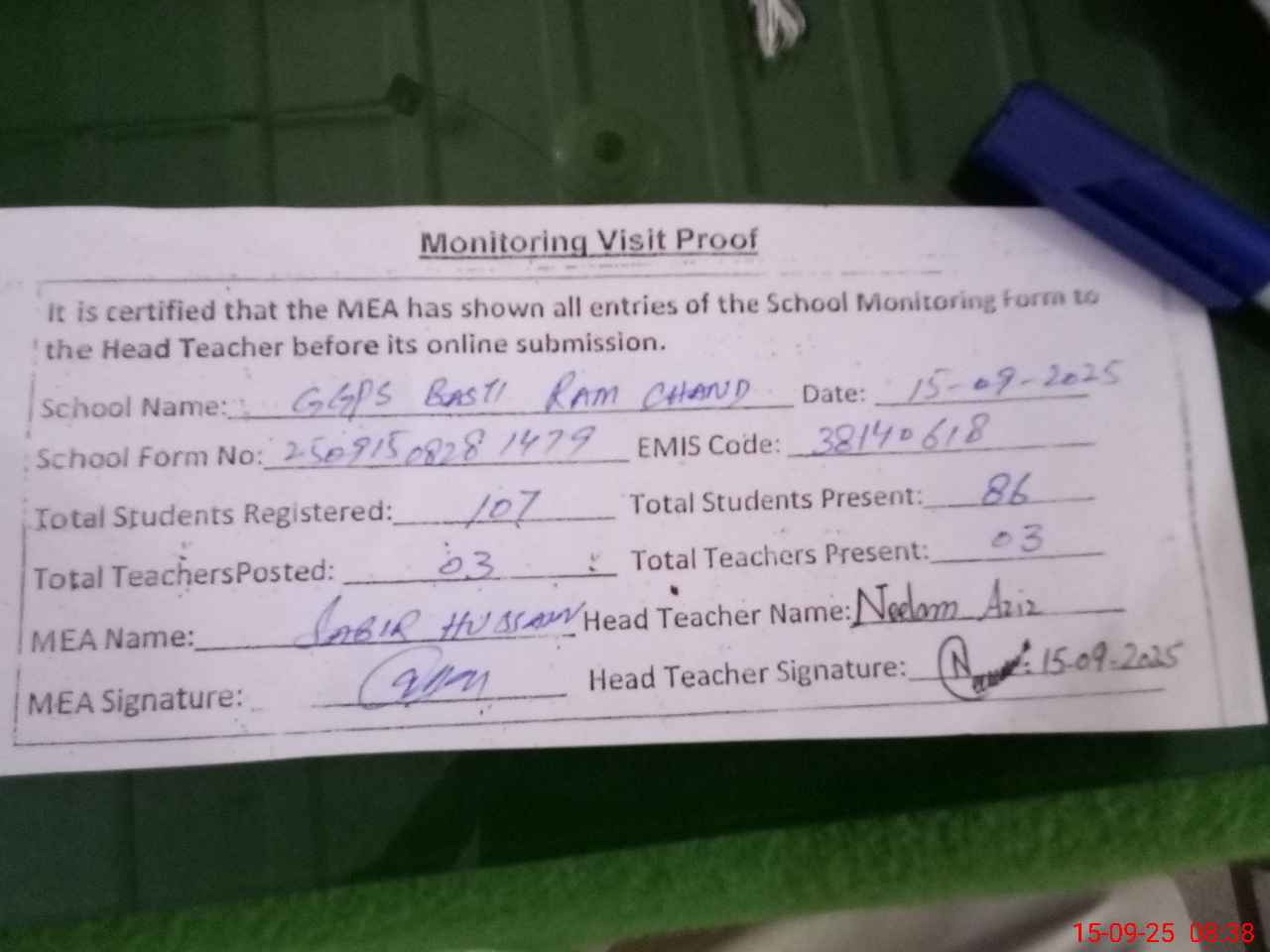 | EMIS Code: 38140618 | Name of School: GGPS BAST RAM CHAND | |||