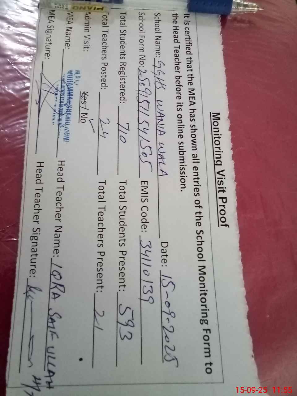 | EMIS Code: 34110139 | Name of School: GGHS WANIA WALA | |||