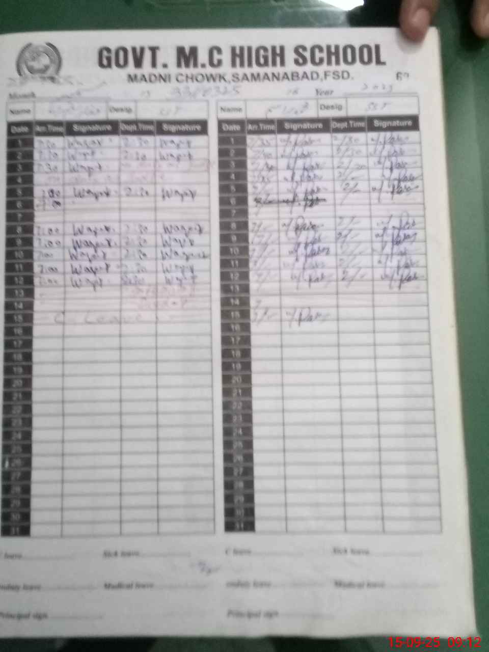 | CNIC | Full Name | Designation | R/C | Absence During Last Calender Month |