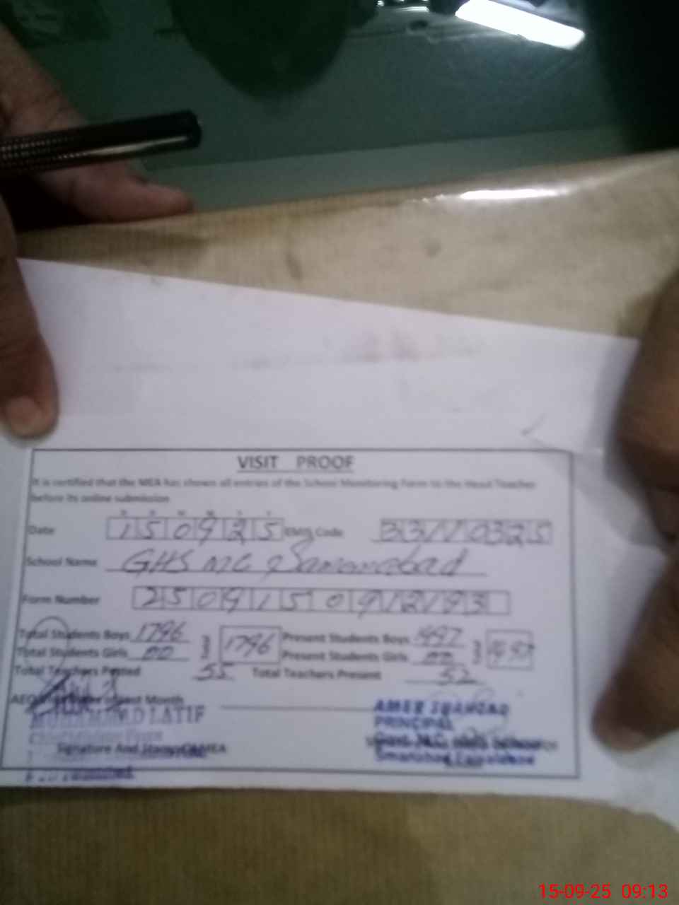| Attendance Register | Head Teacher | MEA with School | Visit Proof |