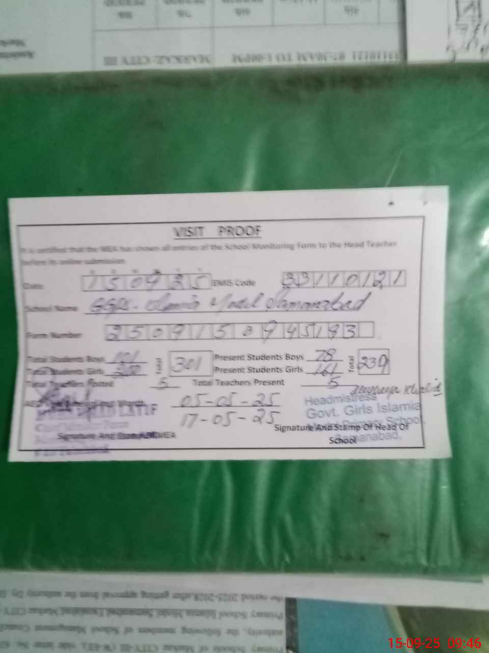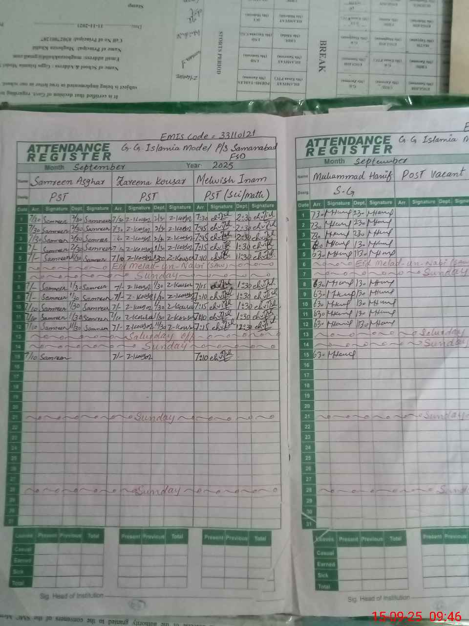 | EMIS Code: 33110121 | Name of School: GGPS ISLAMIA MODEL SAMANABAD | |||