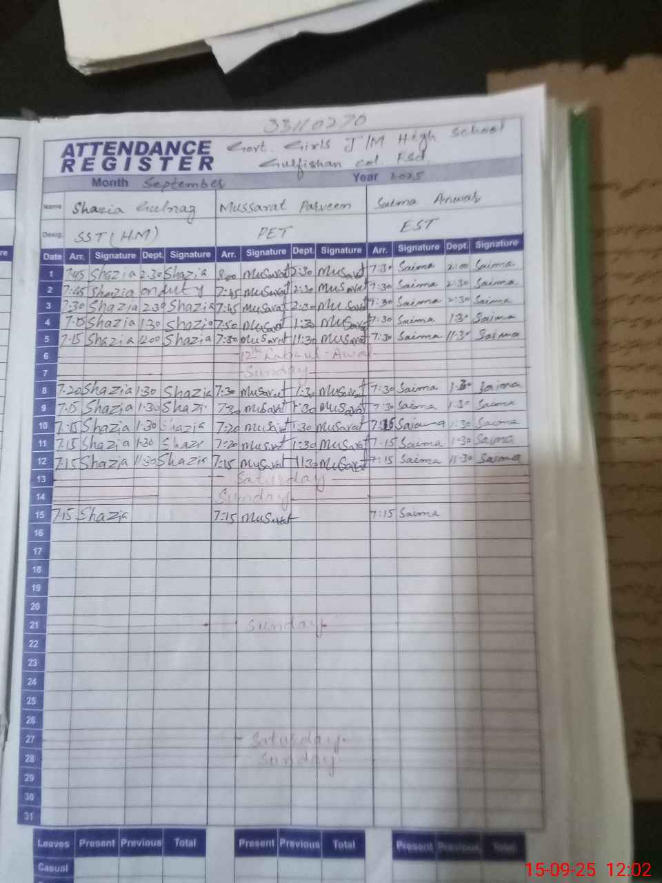 | EMIS Code: 33110270 | Name of School: GGHS JUNIOR MODEL GULFISHAN COLONY | |||