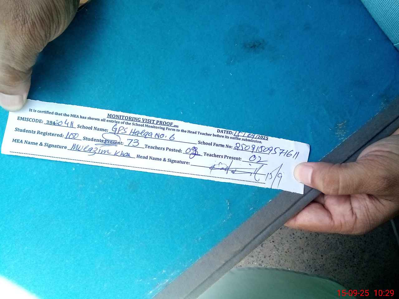 | EMIS Code: 38420411 | Name of School: GPS HALQA NO.6 | |||