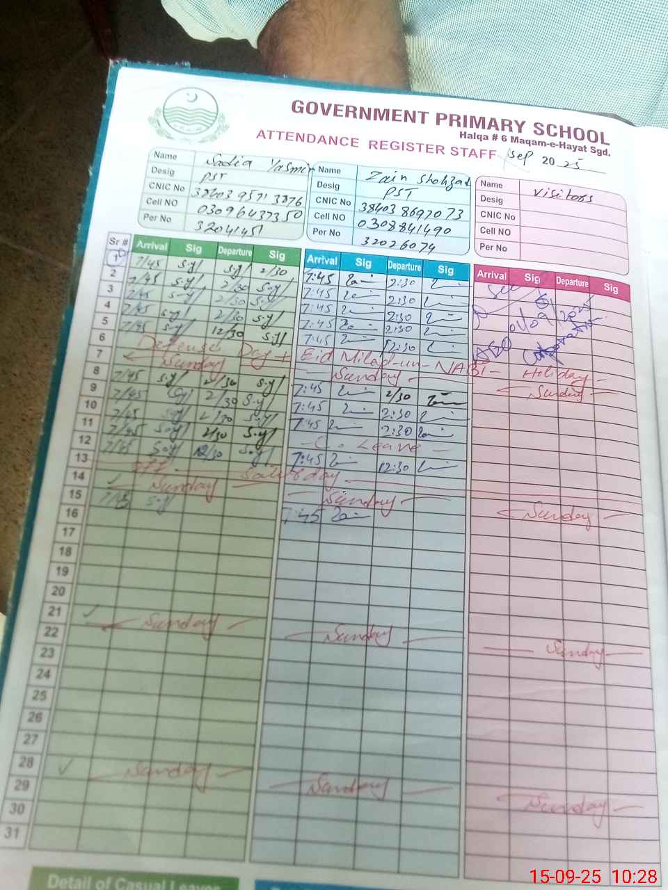 | Name: Sa**** Ya**** Designation: (School Headmaster's/Headmistress's) PST Phone/Cell Number: 03**** |