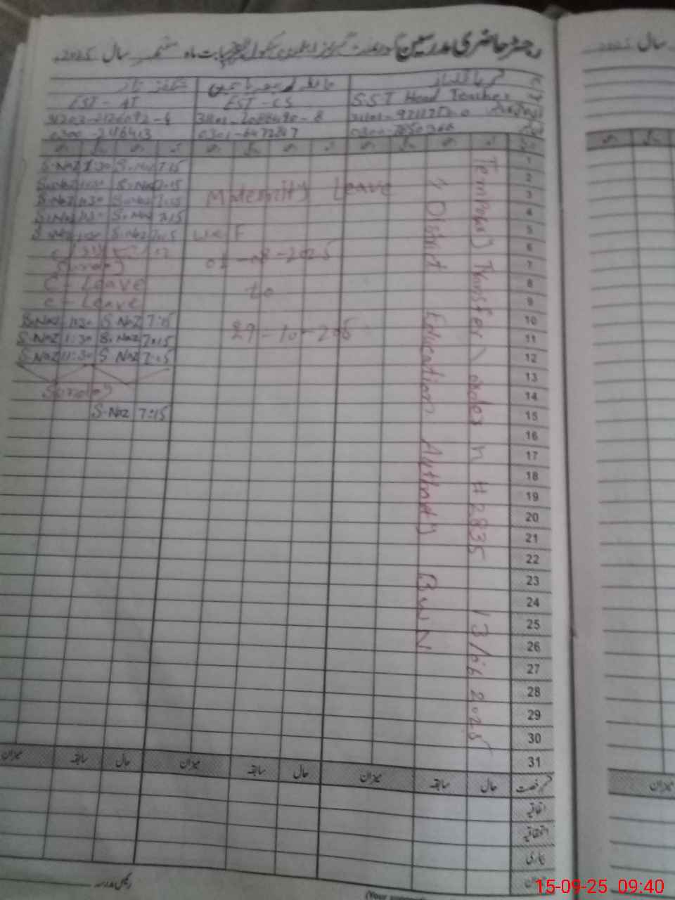 | 31**** | Sh**** Na**** | 3 | 1 | 0 | 0 | 0 | 0 | 0 | 0 | 0 | 0 | 0 | Absent (Un-Authorized) |