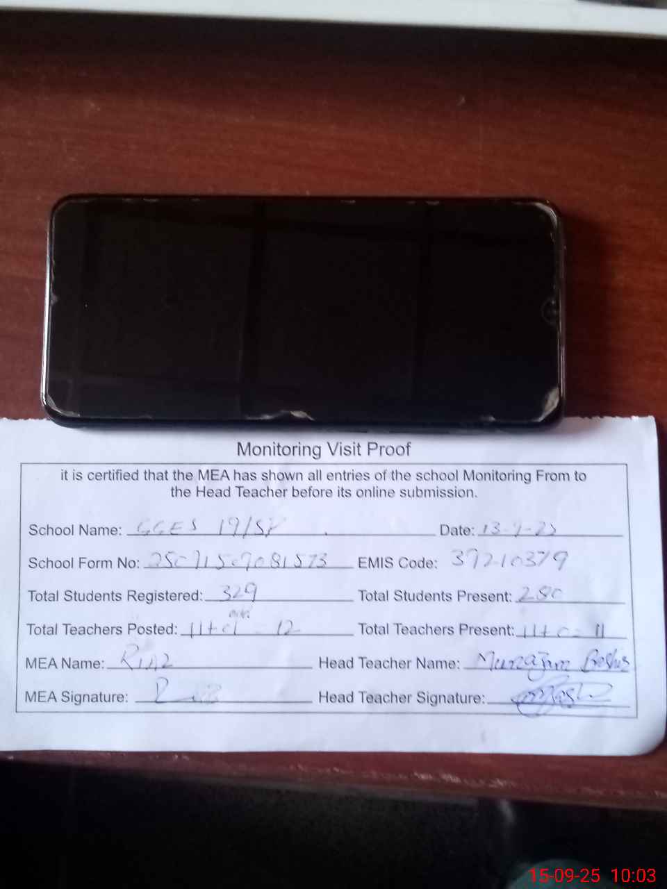 | Name: MU**** BA**** Designation: (School Headmaster's/Headmistress's) S.S.T.(GENERAL) Phone/Cell Number: 03**** |