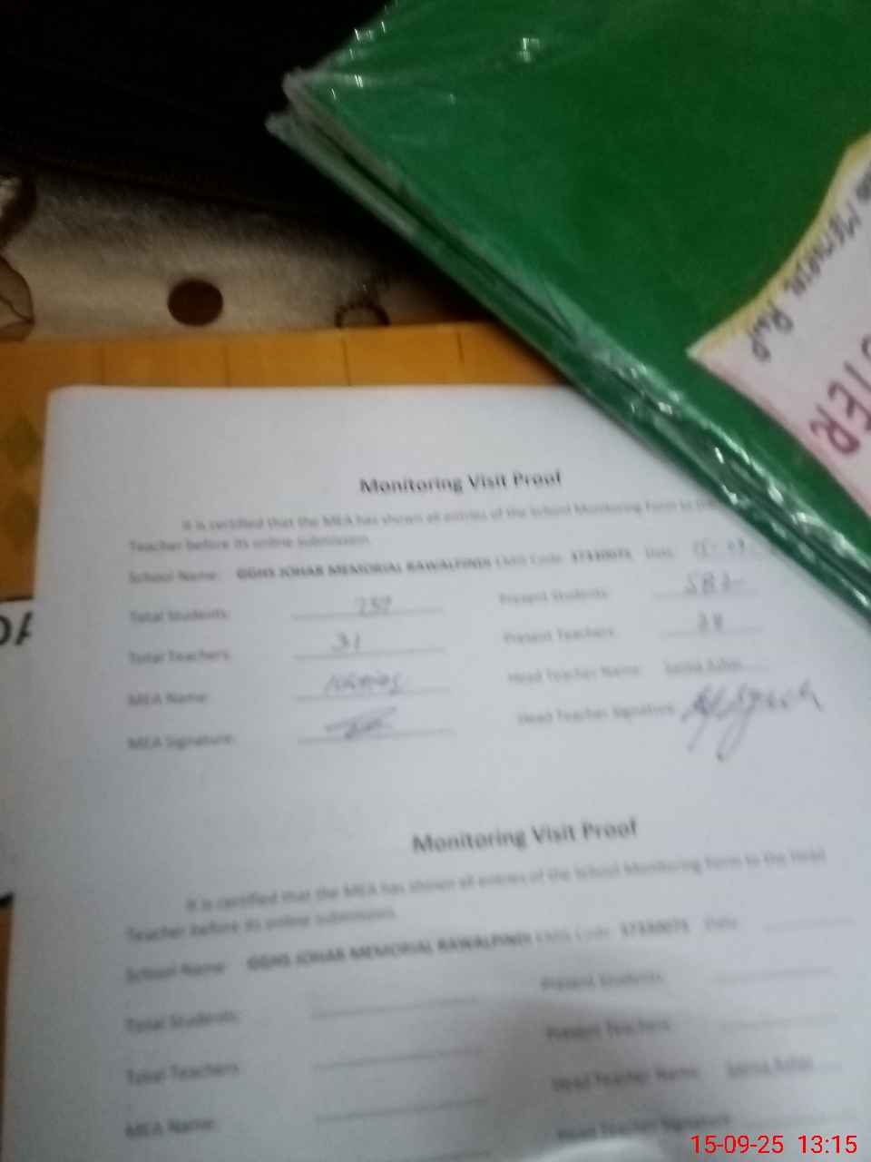 | EMIS Code: 37330075 | Name of School: GGHS JOHAR MEMORIAL | |||