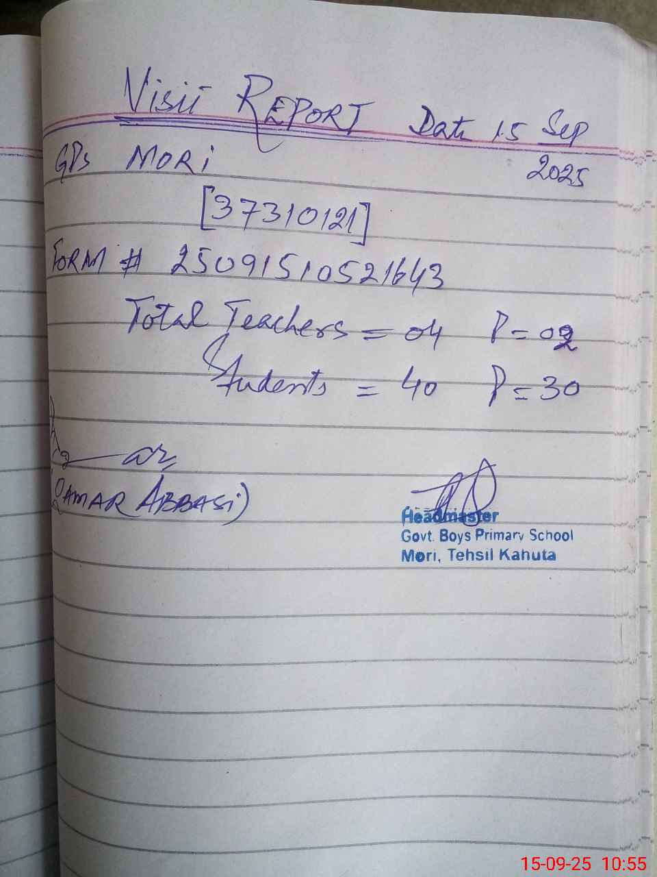 | Name: Ab**** Ra**** Ja**** Designation: (School Headmaster's/Headmistress's) PST Phone/Cell Number: 03**** |