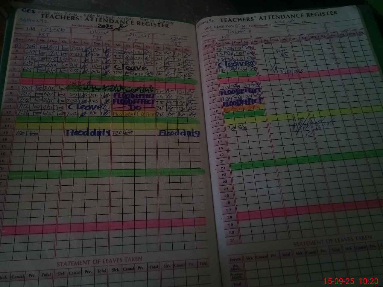 | Leave | Duty | Absent | Maternity | Medical | Ex- Pak |