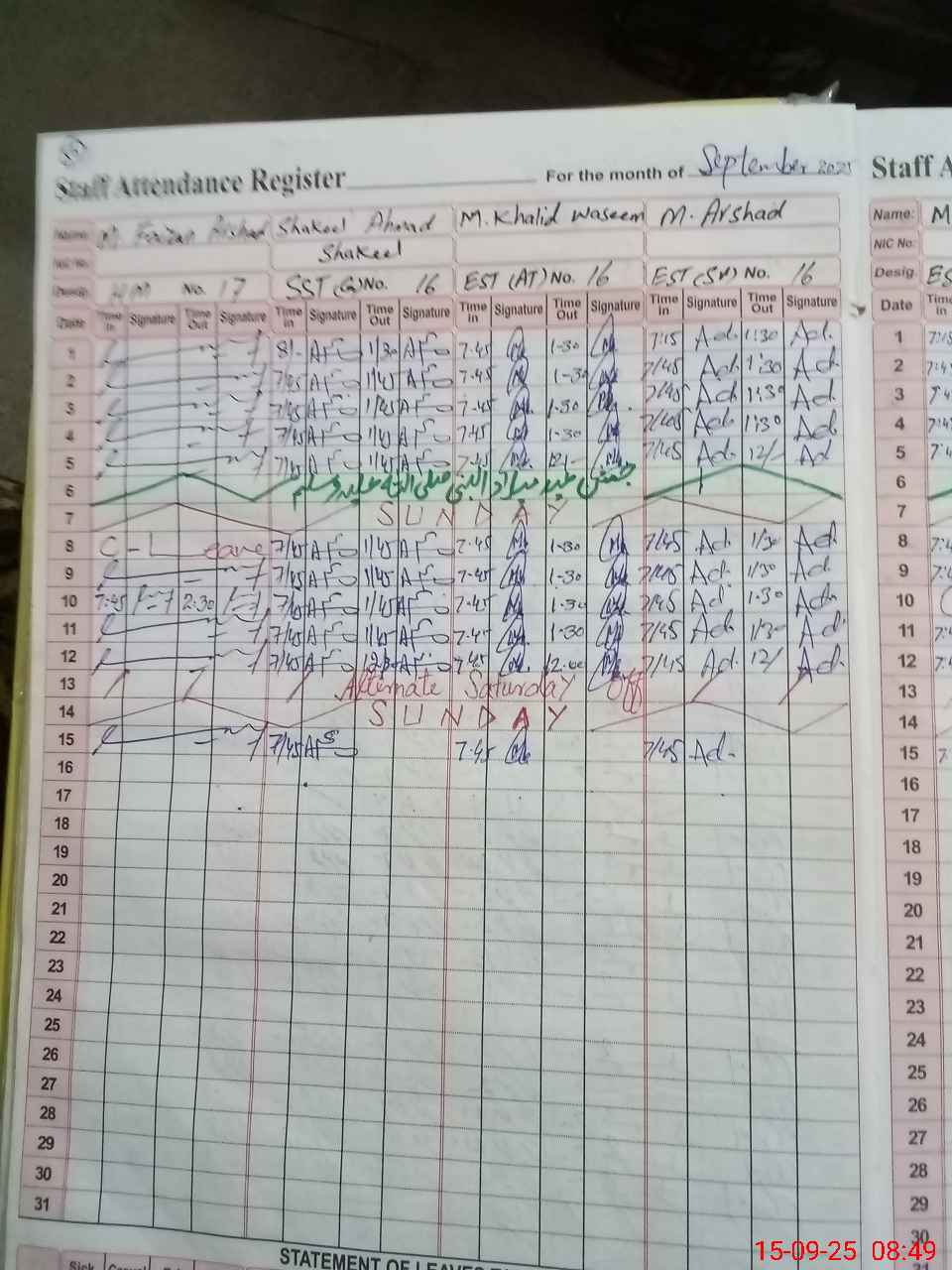 | 34**** | Sh**** Pa**** | SST | Regular | 0 | 0 | 0 | 0 | 0 | 0 | 0 | 0 | 0 | Absent (Un-Authorized) |