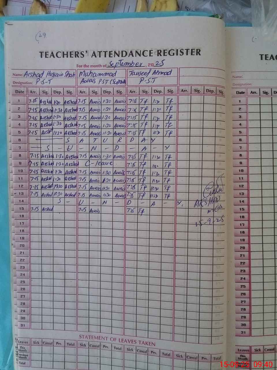 | Name: AR**** HU**** SH**** Designation: (School Headmaster's/Headmistress's) PST Phone/Cell Number: 03**** |