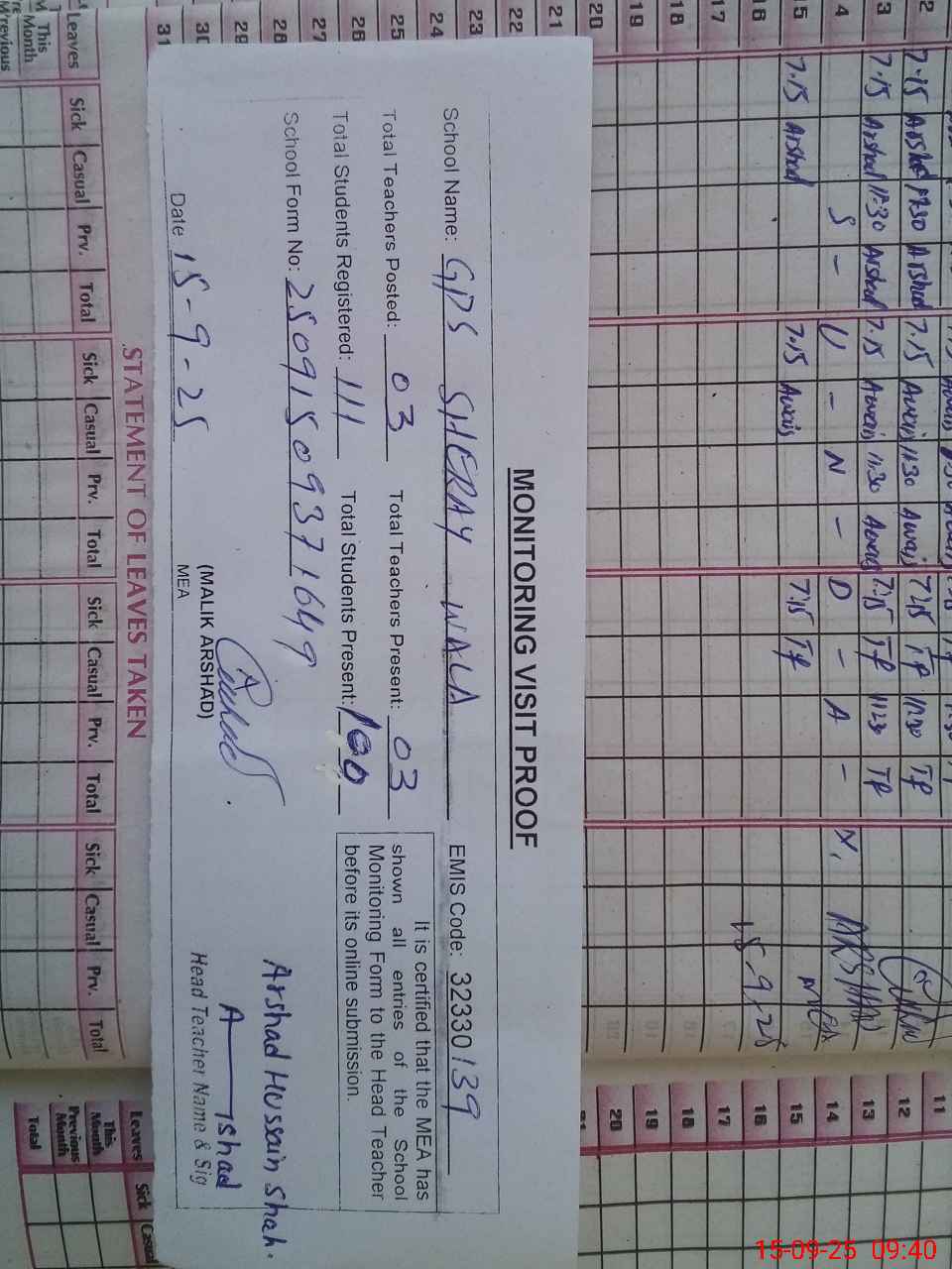 | EMIS Code: 32330139 | Name of School: GPS SHERAY WALA | |||