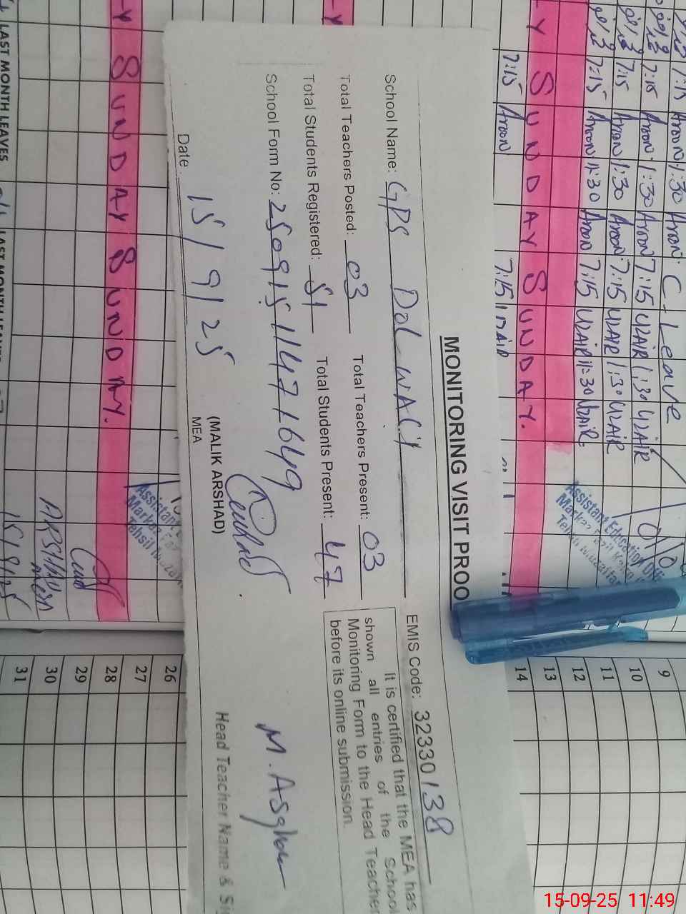 | EMIS Code: 32330138 | Name of School: GPS DOL WALI | |||