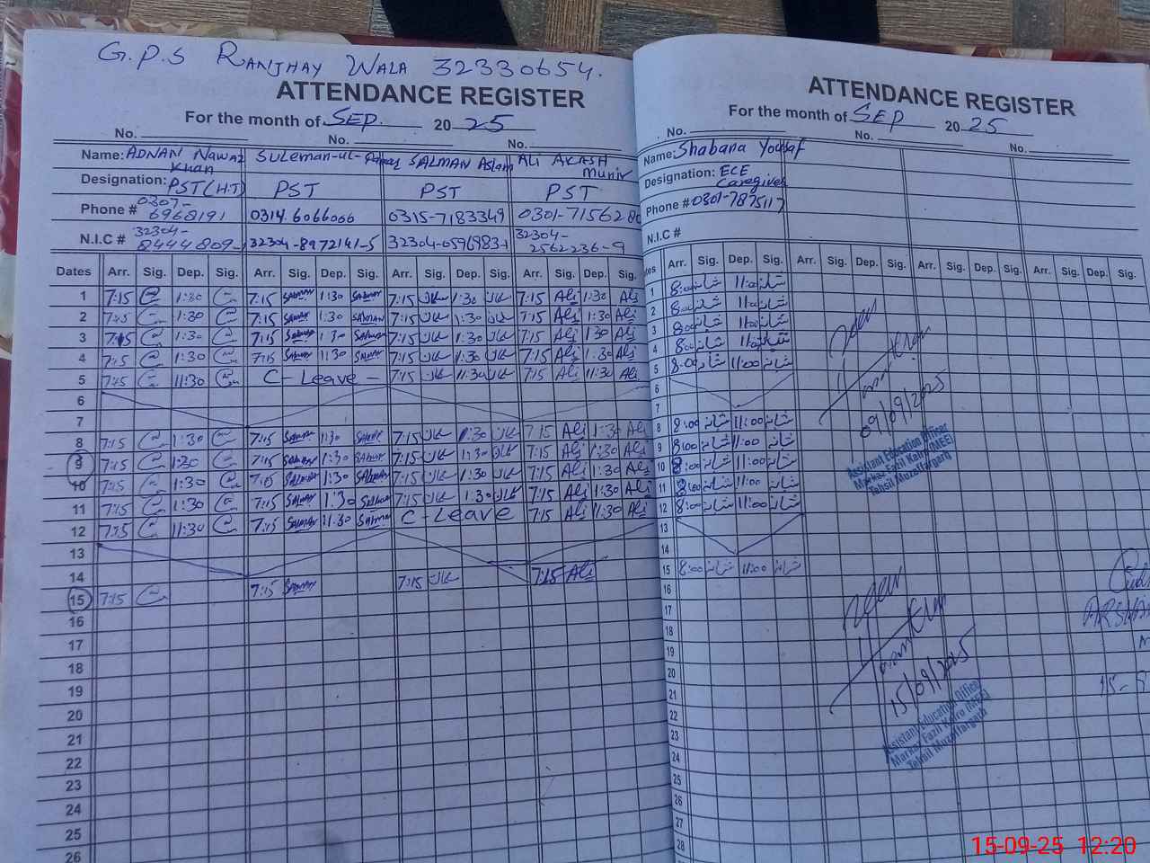 | Name: AD**** Designation: (School Headmaster's/Headmistress's) PST Phone/Cell Number: 03**** |