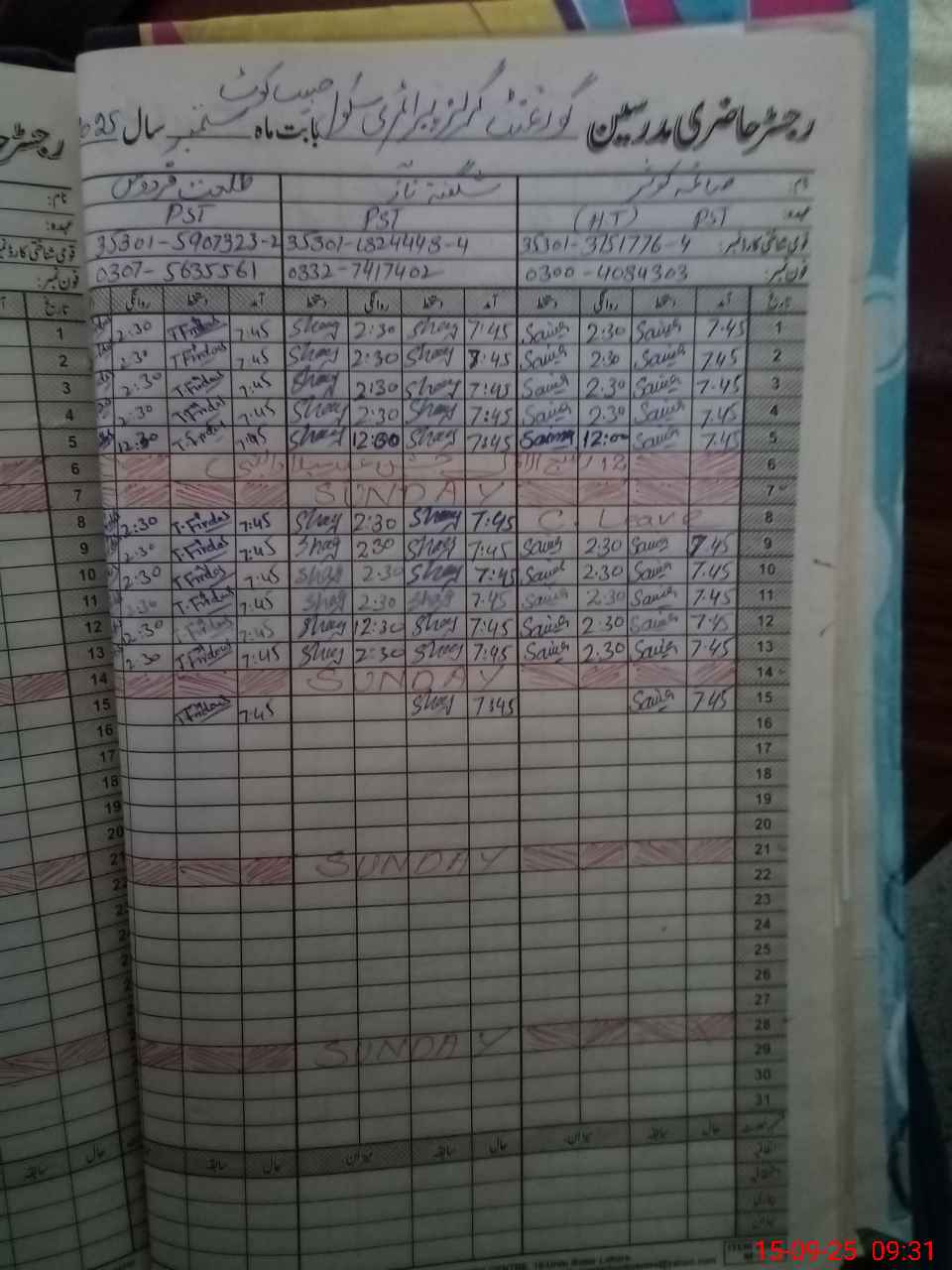 | Name: Sa**** Ko**** Designation: (School Headmaster's/Headmistress's) PST Phone/Cell Number: 03**** |