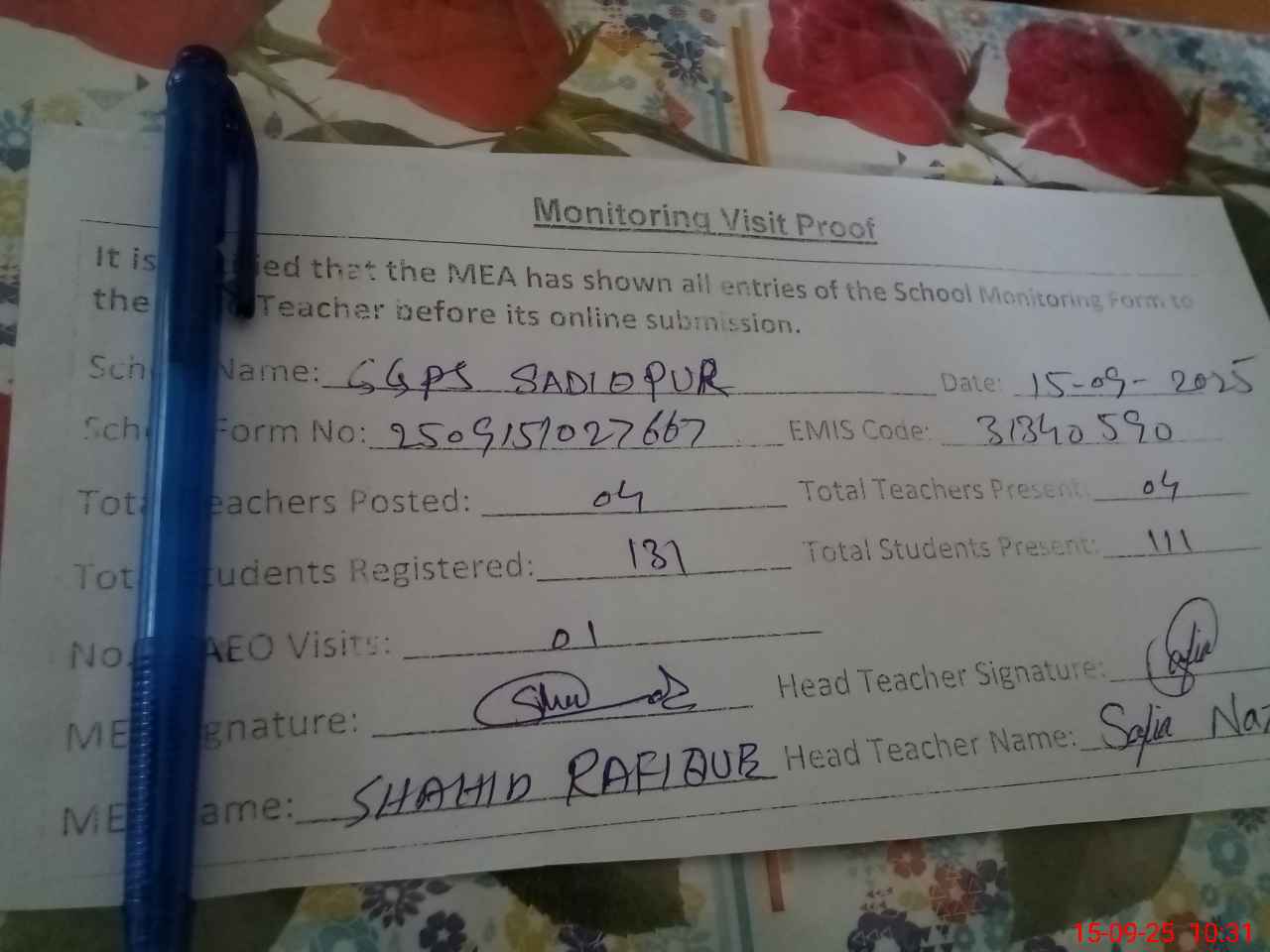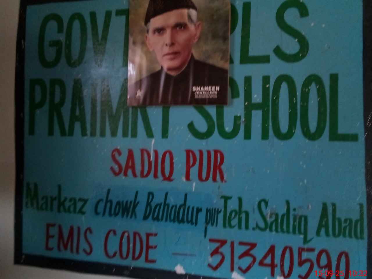 | EMIS Code: 31340590 | Name of School: GGPS SADIQ PUR | |||