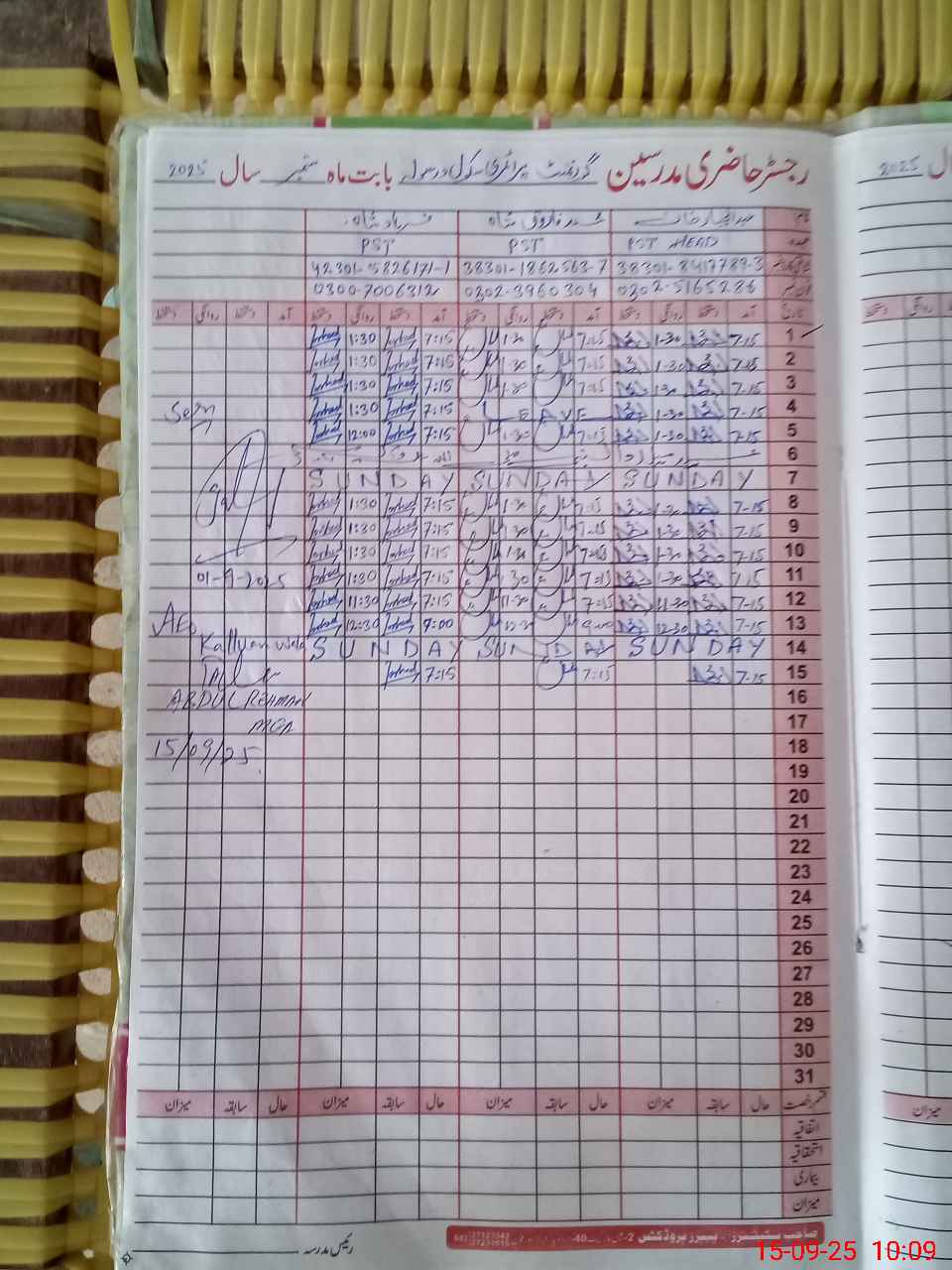 | Name: AB**** JA**** Designation: (School Headmaster's/Headmistress's) PST Phone/Cell Number: 03**** |