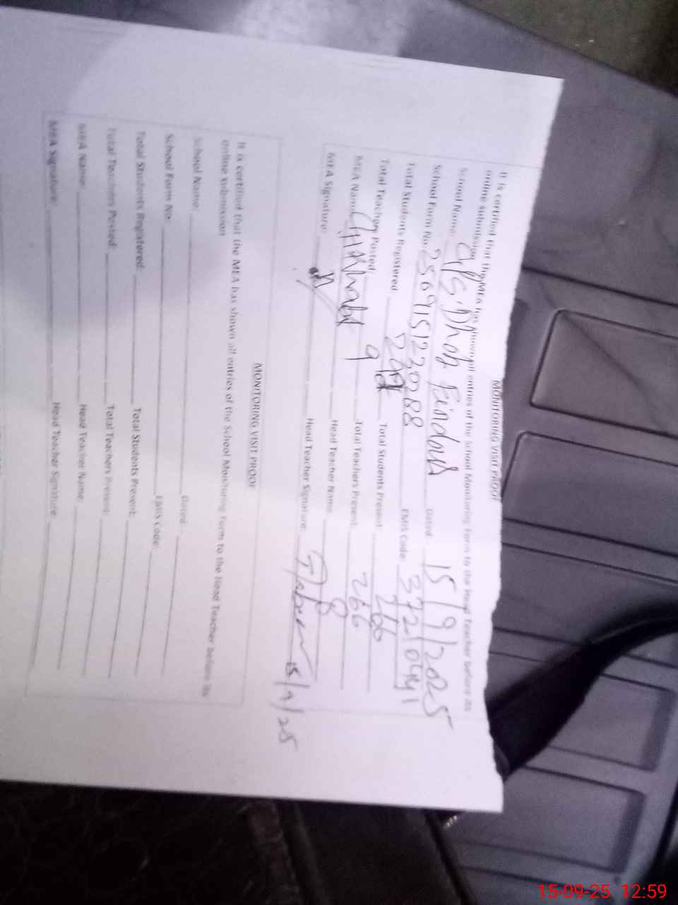 | Attendance Register | Head Teacher | MEA with School | Visit Proof |