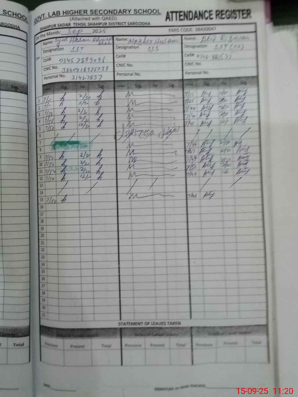 | Name: HA**** AH**** SH**** Designation: (School Headmaster's/Headmistress's) SST Phone/Cell Number: 03**** |