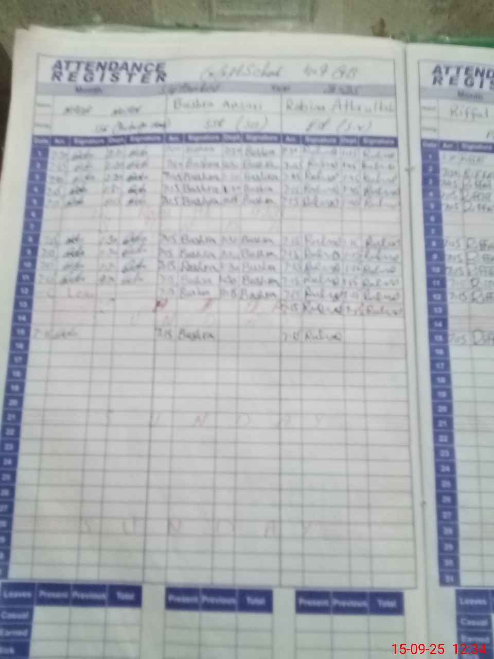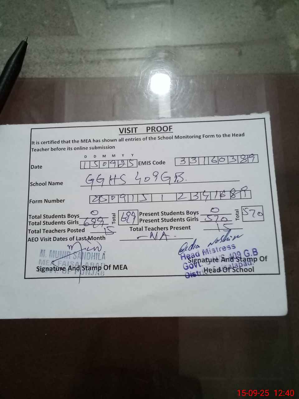 | Attendance Register | Head Teacher | MEA with School | Visit Proof |