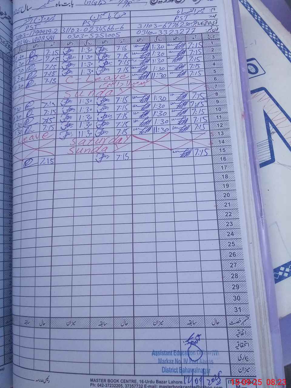 | CNIC | Full Name | Designation | R/C | Absence During Last Calender Month |