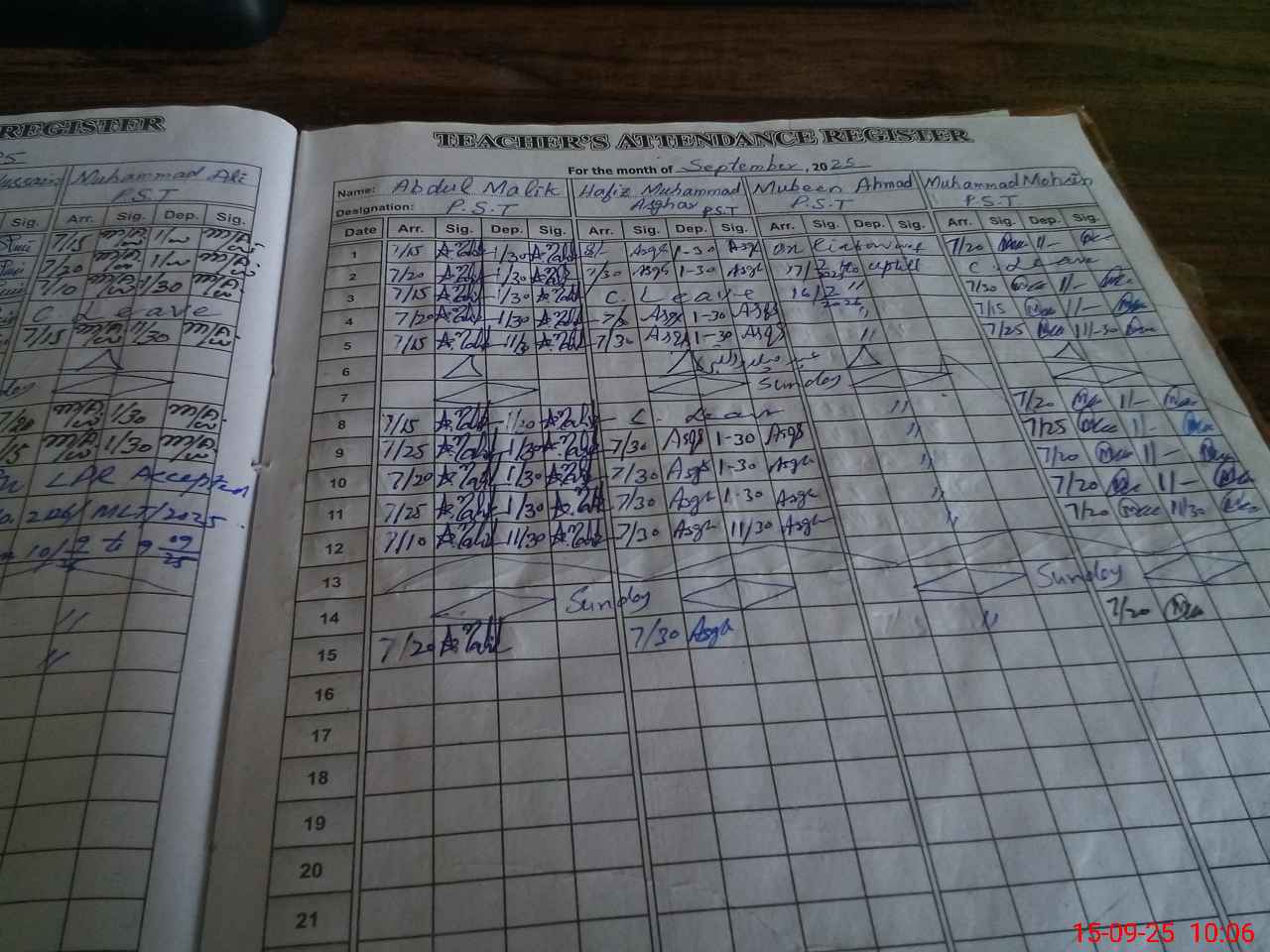| CNIC | Full Name | Designation | R/C | Absence During Last Calender Month |