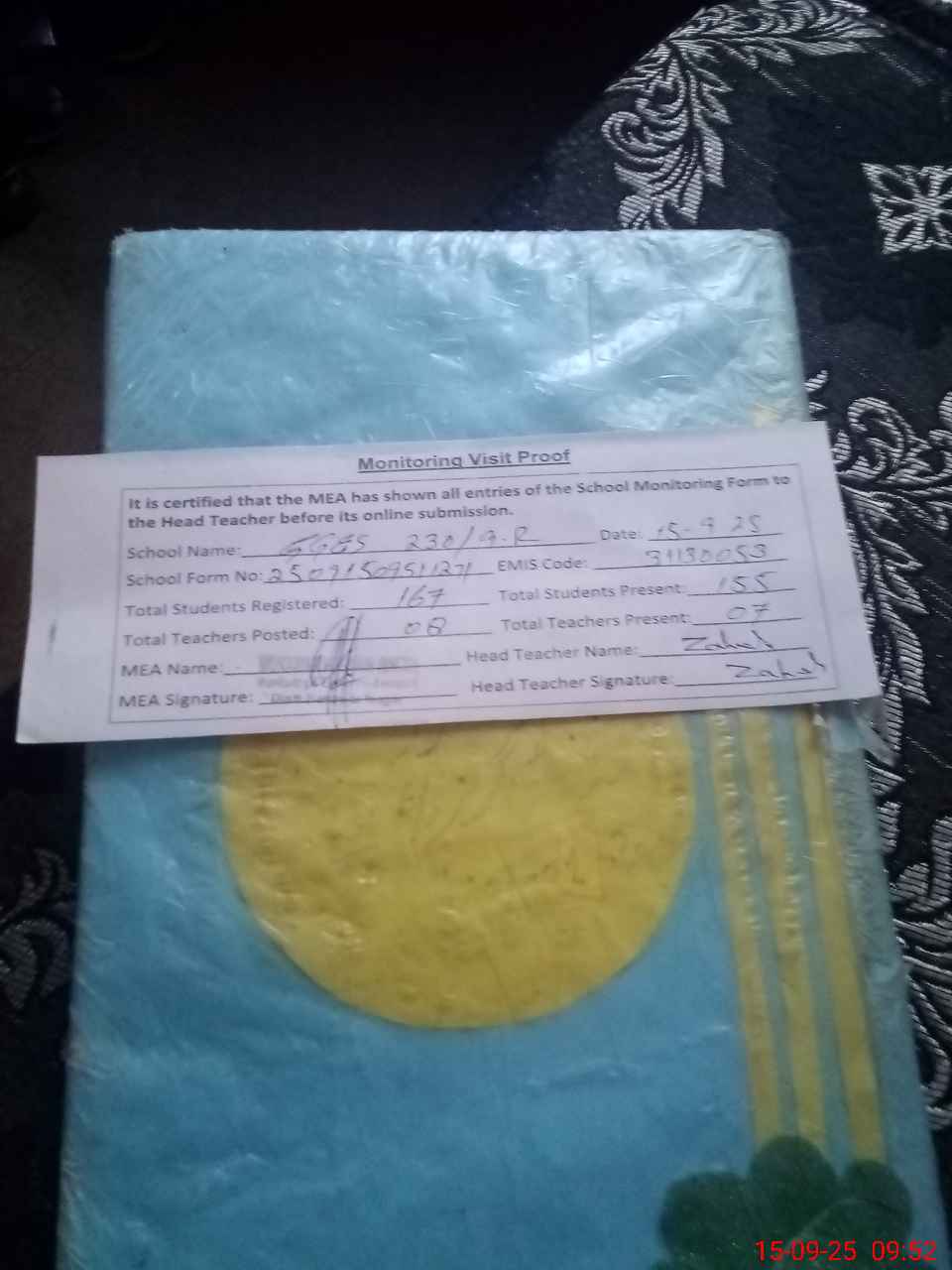| Name: Za**** Pa**** Designation: (School Headmaster's/Headmistress's) S.S.T.(GEN Phone/Cell Number: 03**** |
