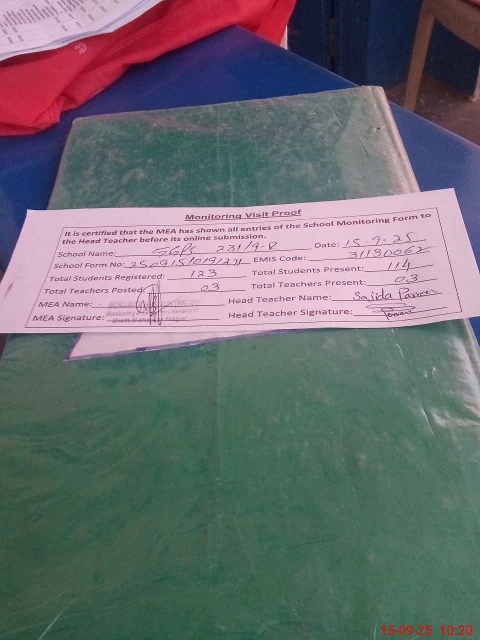 | EMIS Code: 31130062 | Name of School: GGPS CHAK 231/9-R | |||