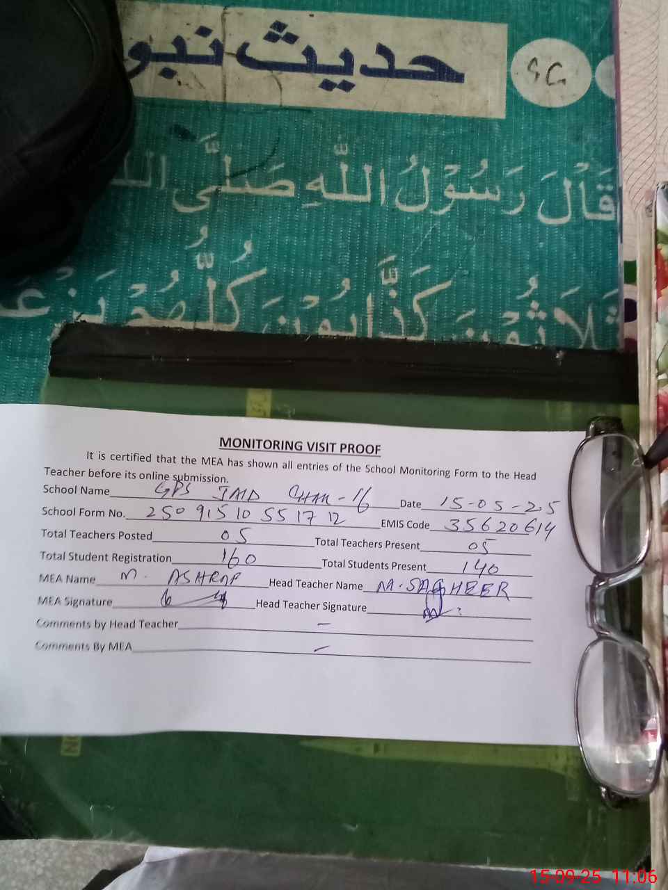 | Attendance Register | Head Teacher | MEA with School | Visit Proof |