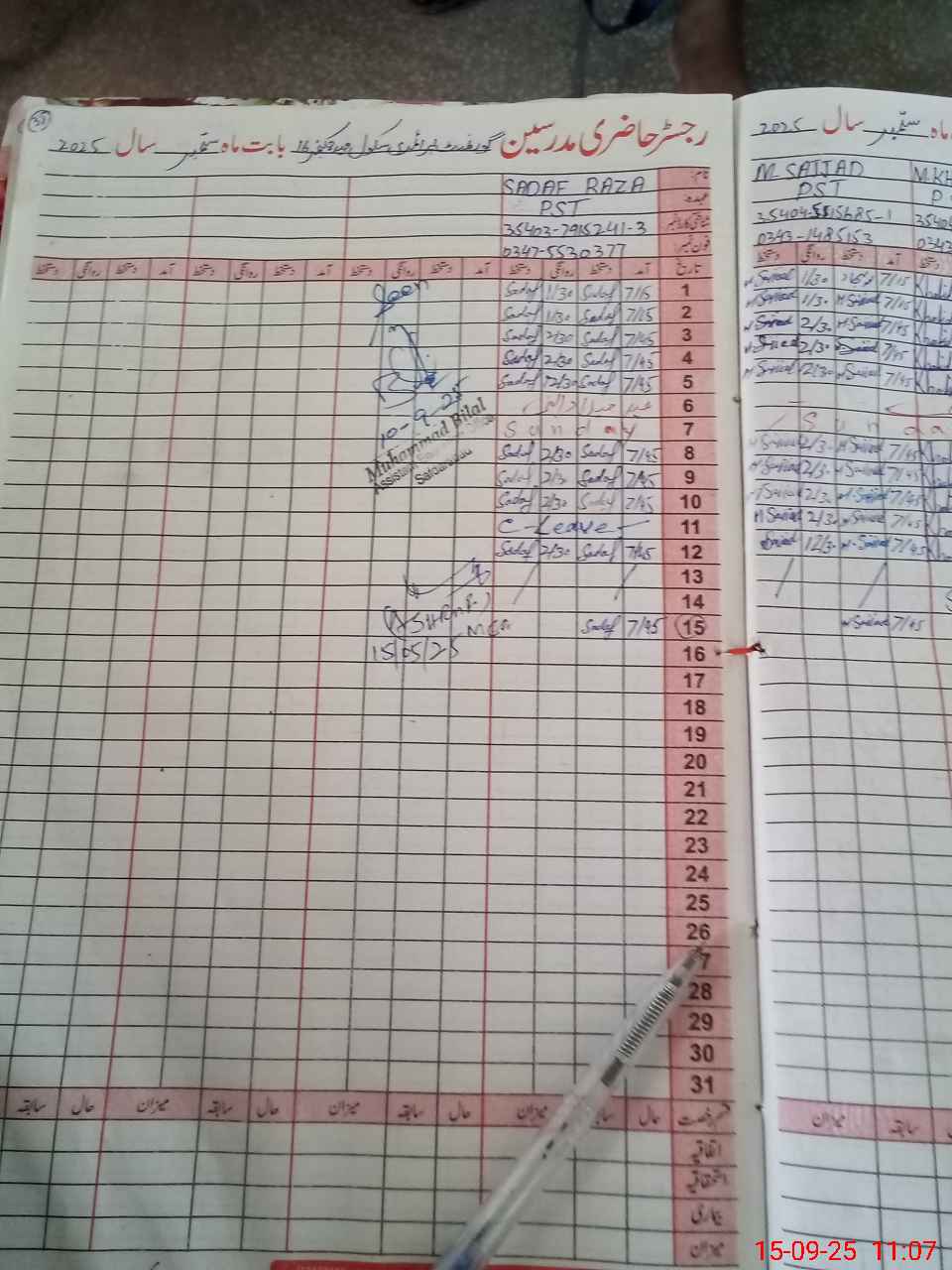 | Name: SA**** AH**** Designation: (School Headmaster's/Headmistress's) PST Phone/Cell Number: 03**** |