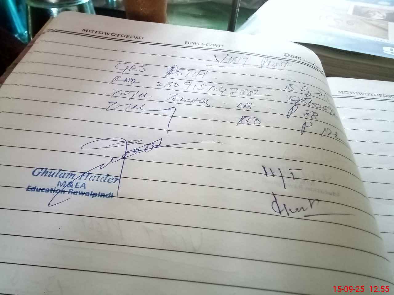 | Name: HA**** AB**** RA**** Designation: (School Headmaster's/Headmistress's) SST (G) Phone/Cell Number: 03**** |