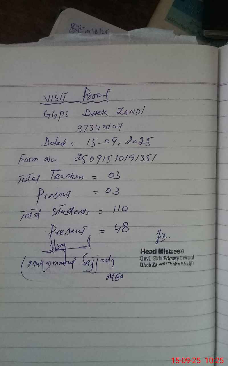 | EMIS Code: 37340107 | Name of School: GGPS DHOK ZANDI | |||