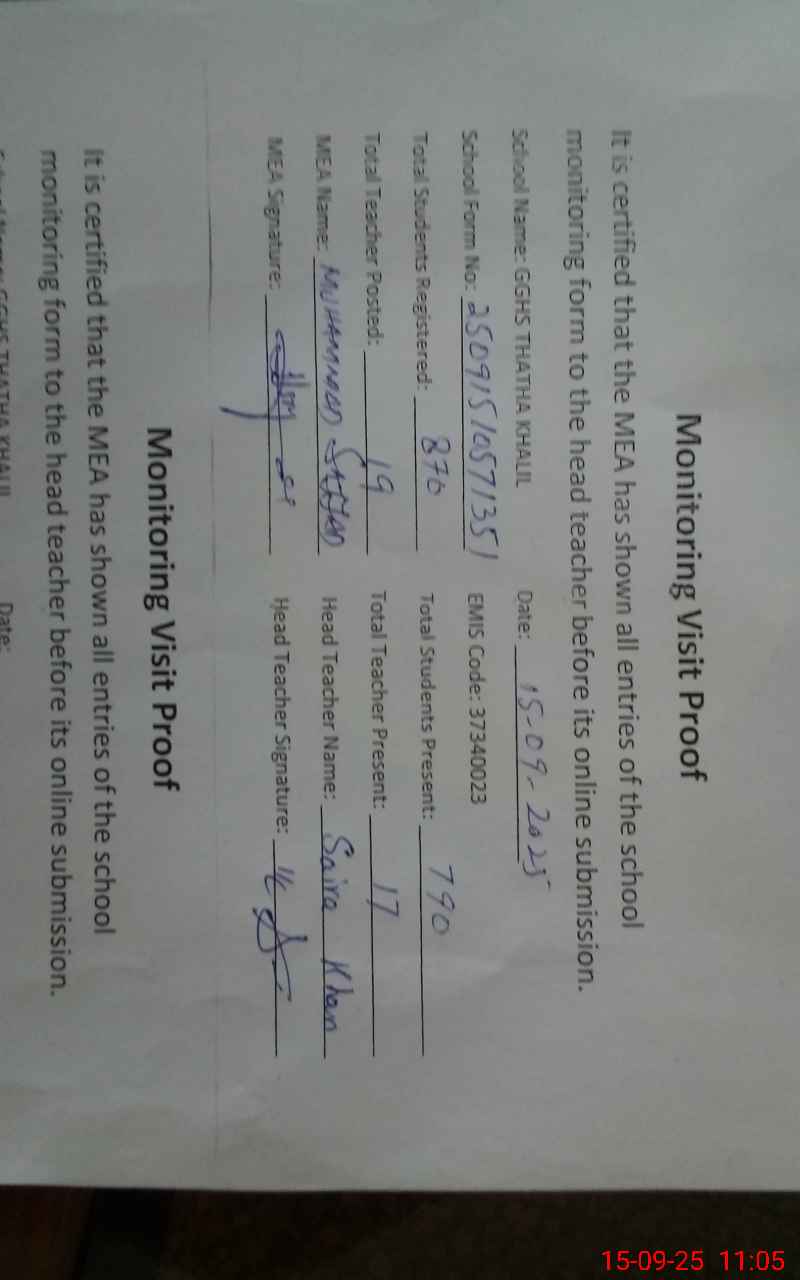 | EMIS Code: 37340023 | Name of School: GGHSS THATTA KHALIL | |||