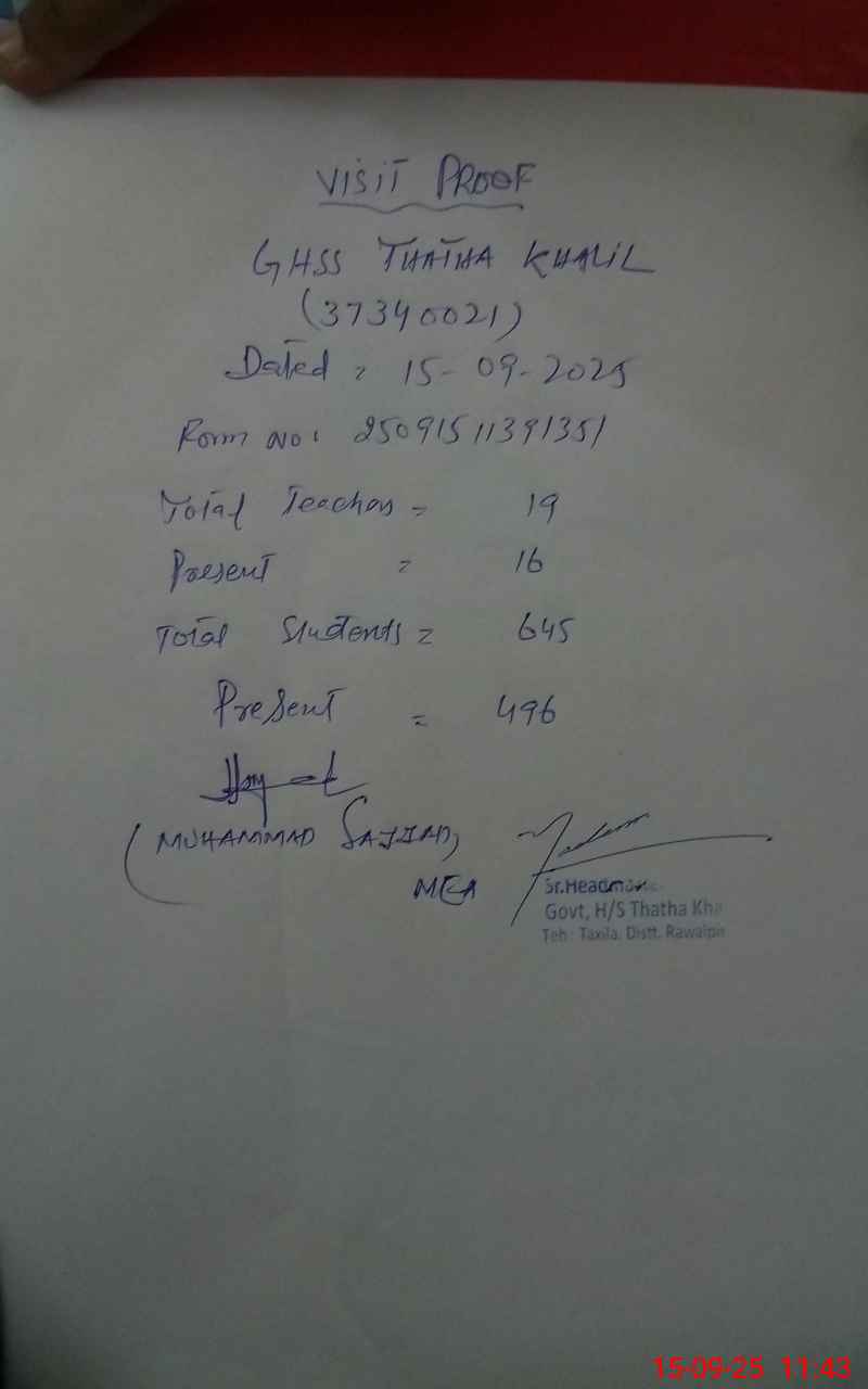 | EMIS Code: 37340021 | Name of School: GHSS THATHA KHALIL | |||