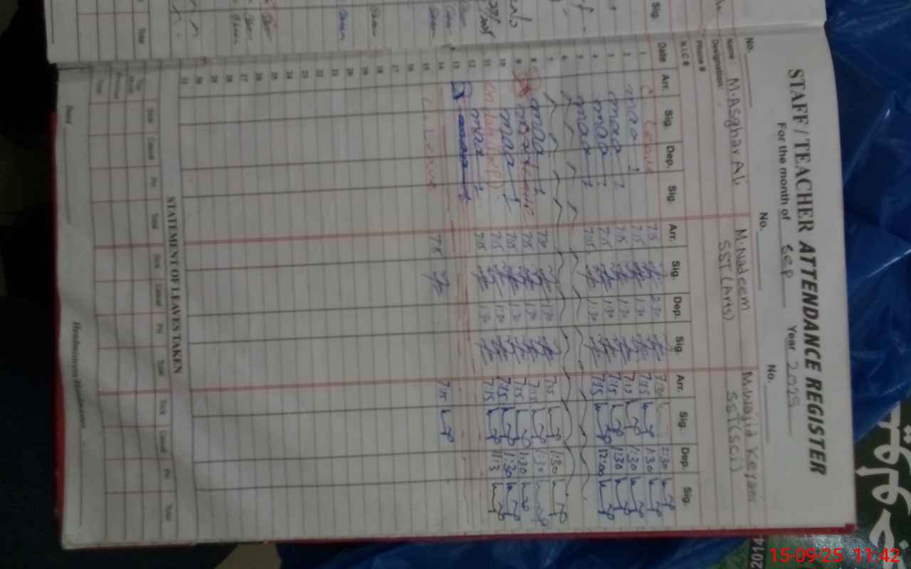 | CNIC | Full Name | Designation | R/C | Absence During Last Calender Month |