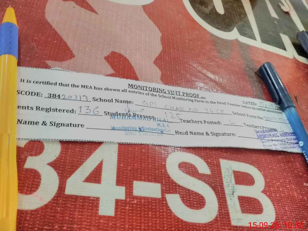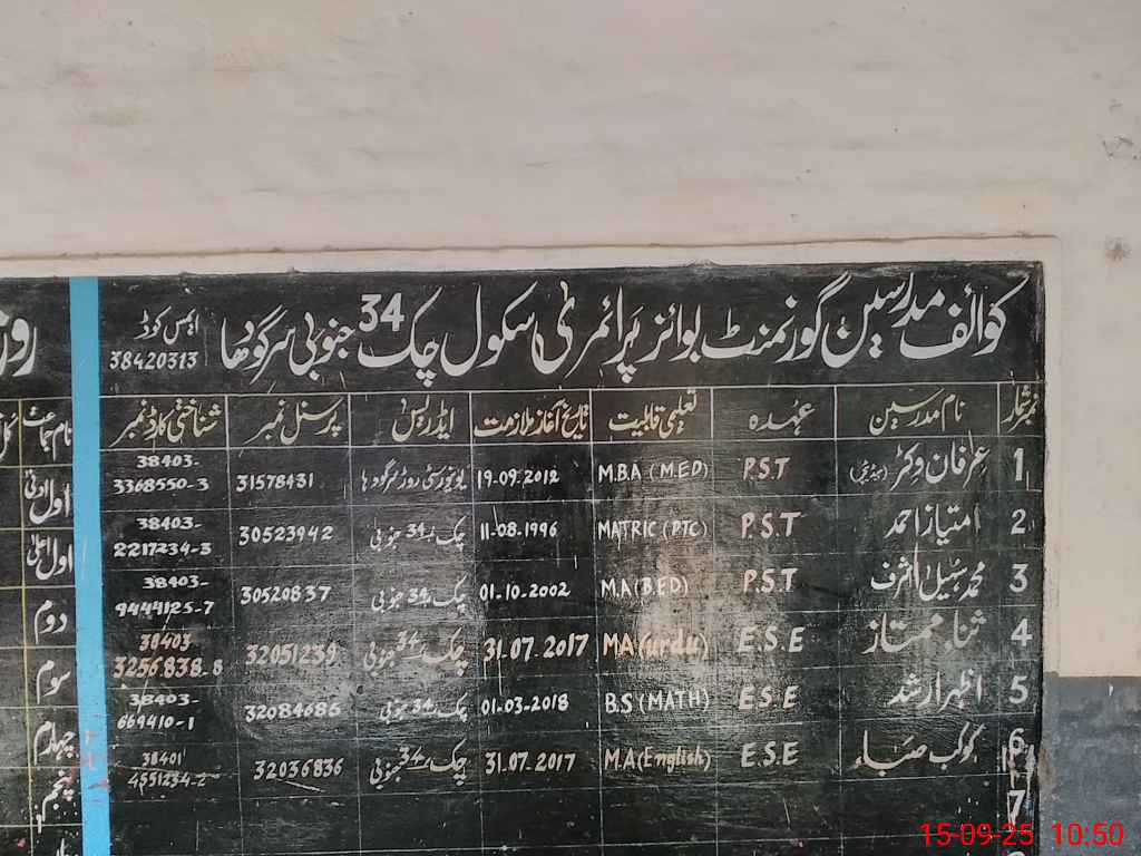 | EMIS Code: 38420313 | Name of School: GPS CHAK NO 34 SB | |||