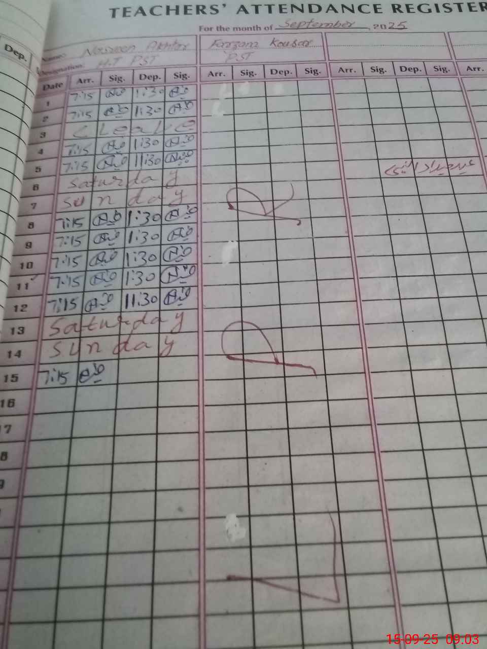 | Monitoring Date: 15-09-2025 | Start Time: 15-09-2025 08:42 AM | End Time: 15-09-2025 09:19 AM | Name of MEA: Sh**** Ra**** | |