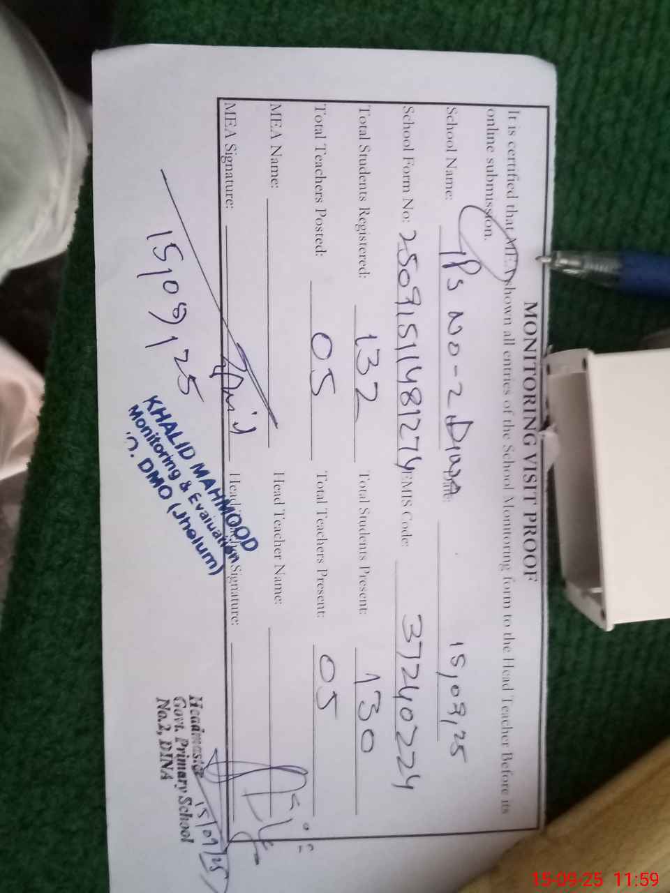 | EMIS Code: 37240224 | Name of School: GPS NO. 2 DINA | |||